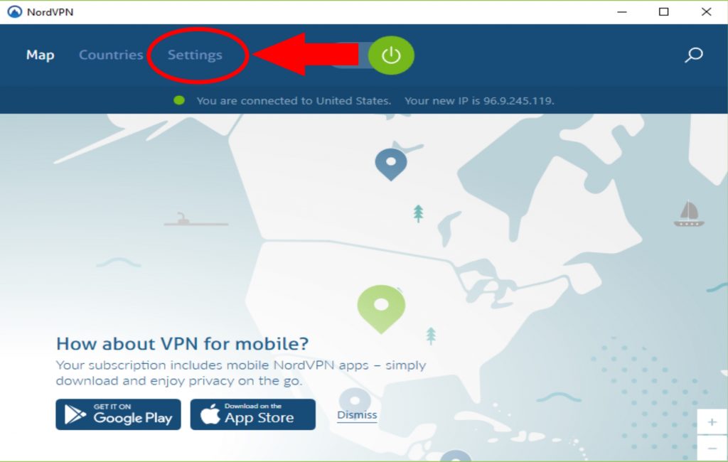 Now let’s see how easy it is to change your location. At the top of your screen you will see the words “Map” and “Countries”. You can choose the way you want to select your new virtual location.